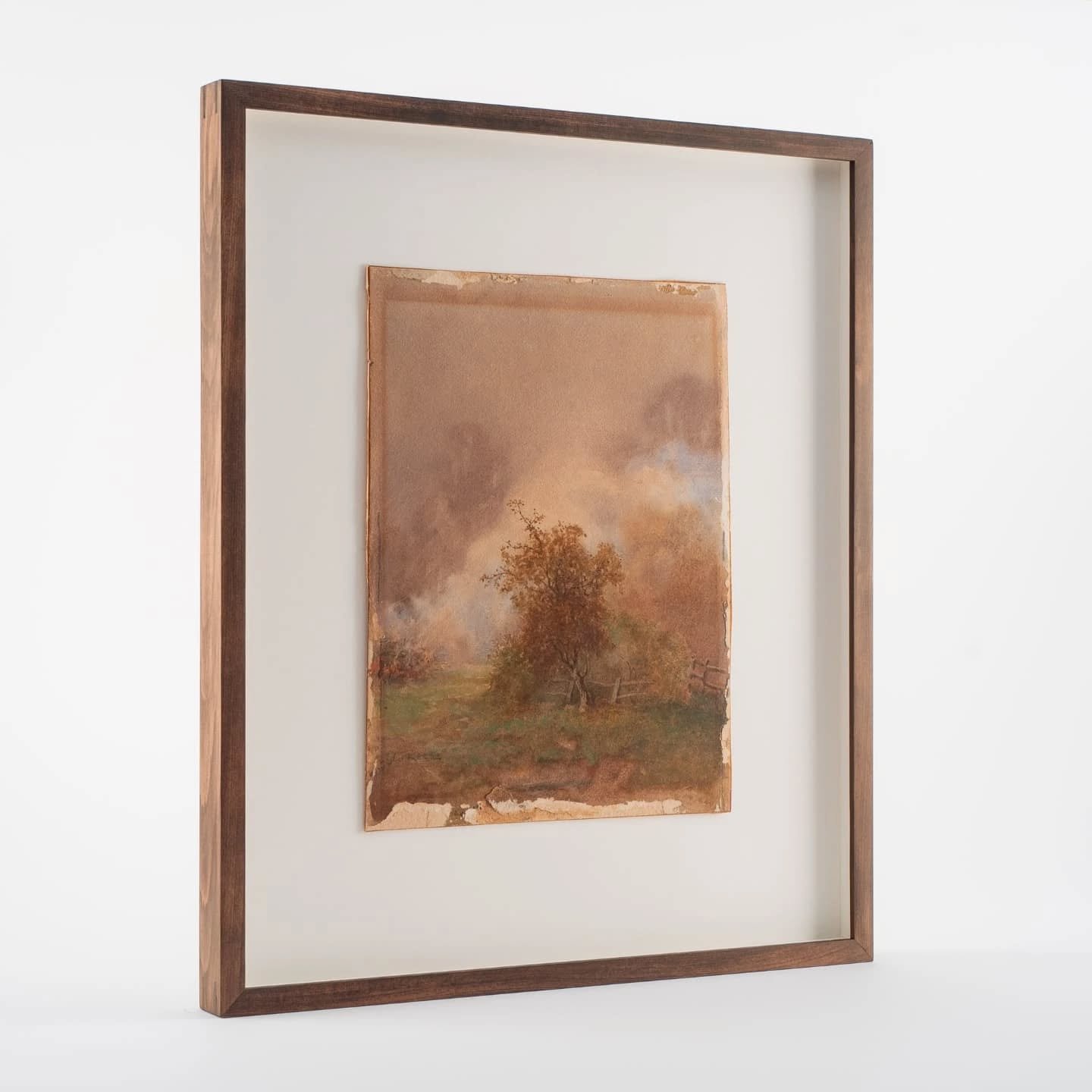 View fullsize Rather old watercolours floated on museum rag in a stained celery top frame behind AR70 glazing by Artglass
